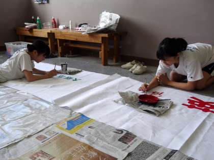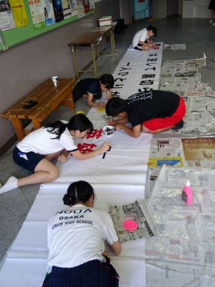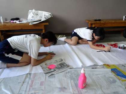 9/26(金)の第68回体育大会に向け、体育科と体育委員会を中心に、今年のスローガン旗の作成を行いました。今年のスローガンは、「努力は決して裏切らない 一人ひとりが輝く英雄(ヒーロー)」です。