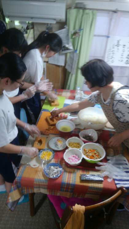 手作りのお菓子をいただいたり、晩ご飯の押し寿司作りを教わっています。