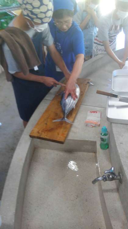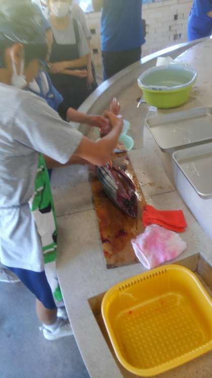 まずは、カツオをさばいています。
