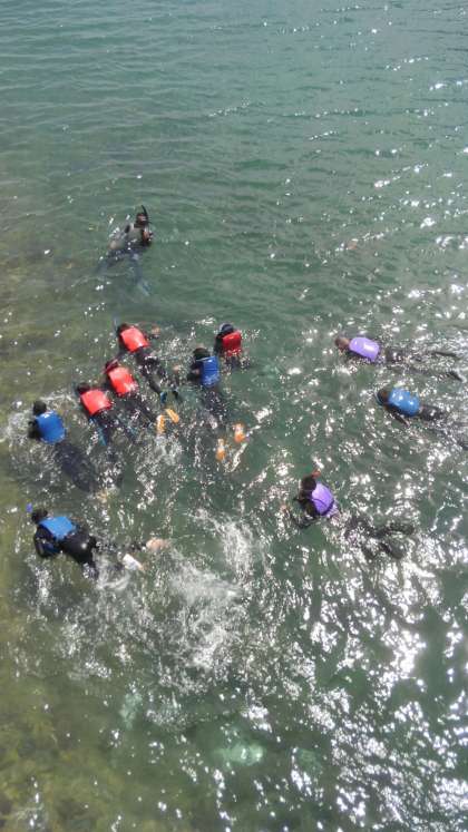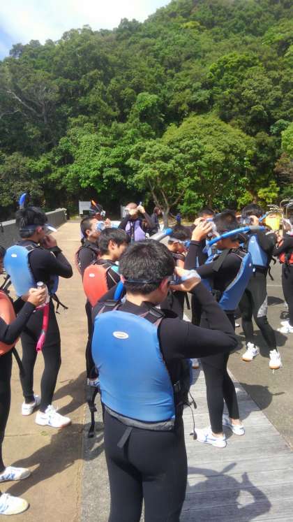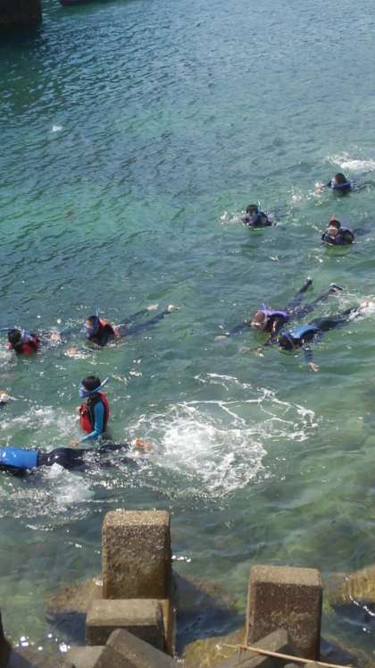 シュノーケリングは、先日の雨の影響で海水が濁っており、実施するかどうかの判断をまよいましたが、結局、実施することができました。