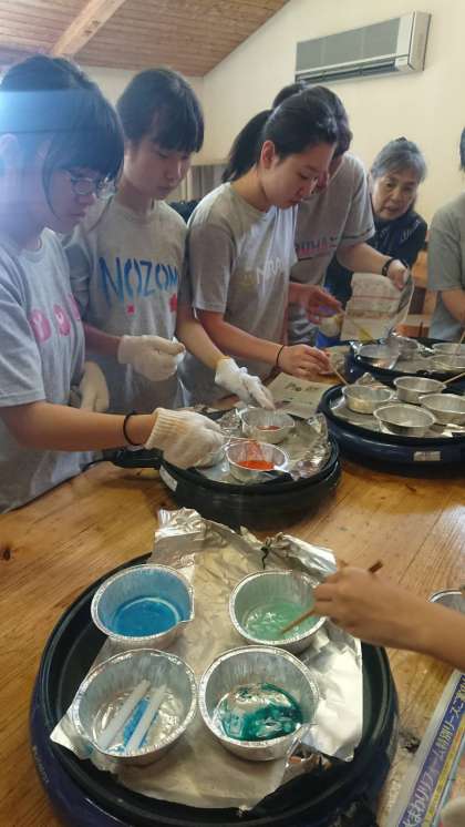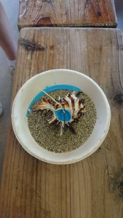 貝細工では、教わったことを生かし、素敵な作品を作っていました。