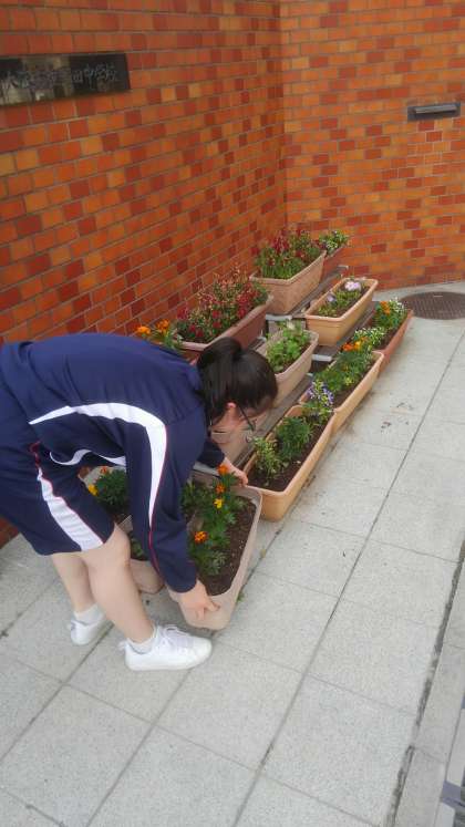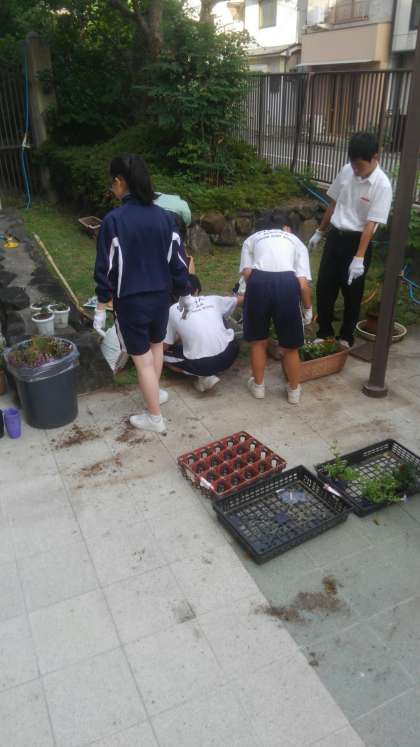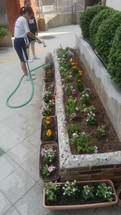 生徒会の執行部が正門、玄関付近の花を植え替えてくれました。