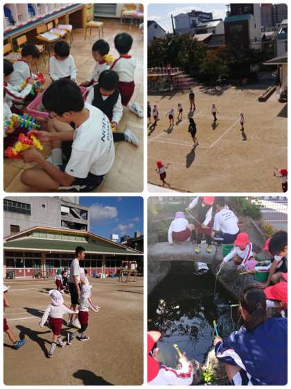 今回は、45分授業だったので体験時間は少し短くなってしまいましたが、いいお天気で、園庭に出て園児たちと走り回ることができました。