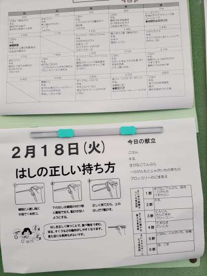今日の給食カレンダーは、正しい箸の持ち方です。