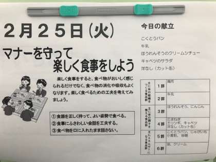 給食カレンダーには、食事のマナーについて書かれてあります。是非、参考にしてください。