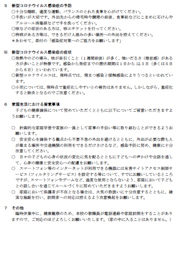 新型コロナウイルス感染症の拡大予防に向けた学校休業について