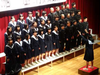 3年生合唱コンクールの課題曲は「いつまでも」です。写真は上から3年1組、3年2組、3年3組です。最高学年らしい美しい歌声のハーモニーを響かせてくれました。3年1組の課題曲の指揮者は植嶋一真くん、伴奏者は米満あかねさん、自由曲「友〜旅立ちの時〜」の指揮者は矢口祐梨香さん、伴奏者は山下真優さんです。3年2組の課題曲の指揮者は嶋崎実香さん、伴奏者は足達侑夏里さん、自由曲「あなたへ-旅立ちの寄せるメッセージ」の指揮者は上野理子さん、伴奏者は粟野涼夏さんです。3年3組の課題曲の指揮者は猫島麻央さん、伴奏者は谷口未歩さん、自由曲「手紙〜拝啓十五の君へ〜」の指揮者は菅由佳さん、伴奏者は狩野佑奈さんです。