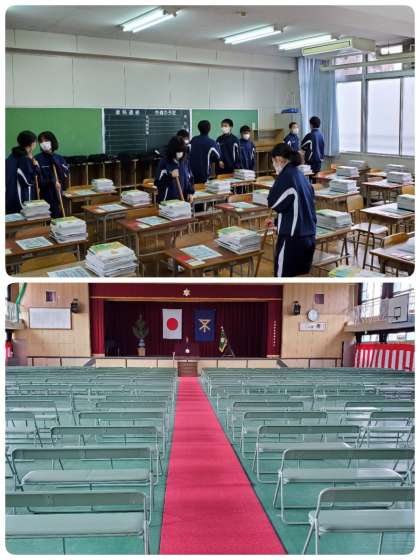 午前中に2年生が登校して入学式の準備を行ってくれました。