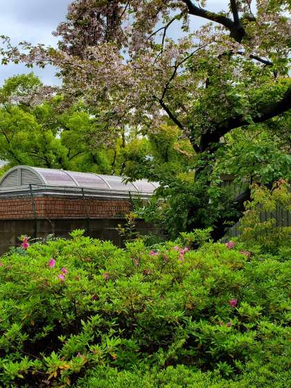 桜の花がそろそろ終わりだと思っていると、先週から咲き始めた体育館裏のつつじがたくさんの花をつけました。