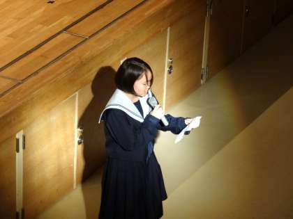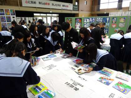 舞台発表の部の最後は教頭先生の講評と新生徒会会長野村微笑さんのおわりのことばです。午後からは野田中学校の体育館で展示発表の部がありました。各教科や部活動からたくさんの素晴らしい作品が出展されていました。