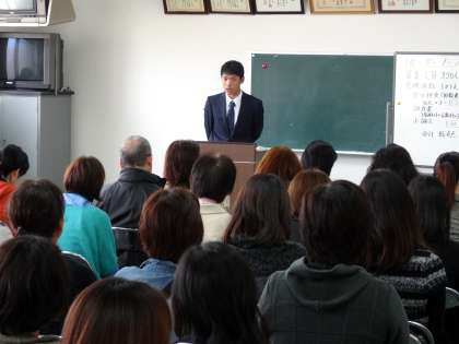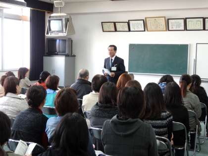 11/8(土)の土曜授業後、3年生の保護者を対象に、本校2階多目的室で第2回進路説明会を行いました。初めに校長先生のあいさつがあり、続いて進路指導主事の牧野先生から、主に高等学校の入学試験についての説明がありました。特に公立高等学校の入学者選抜にける小論文については、国語科の長谷先生からも説明がありました。
