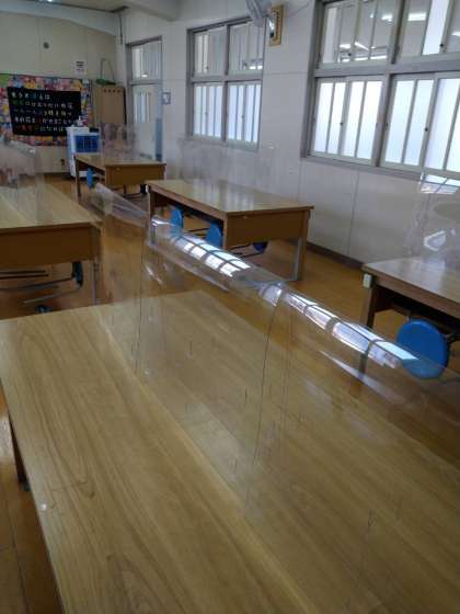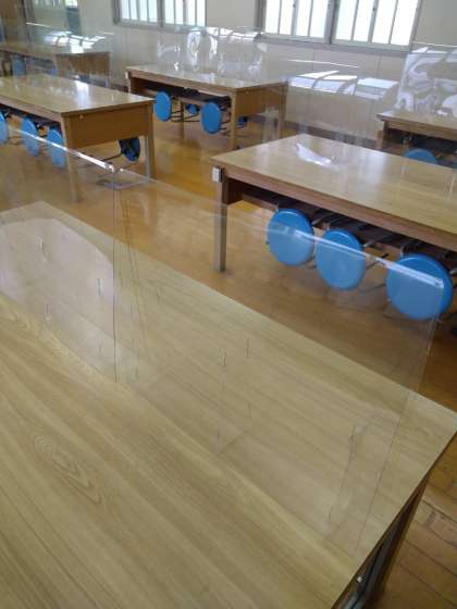 本校の被服室に飛沫防止パーテーションを設置しました。