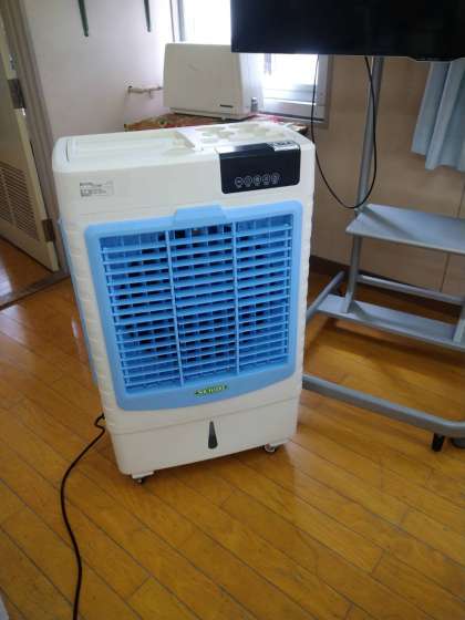また、クーラーのない被服室はとても暑いので、冷風機も設置されました。
