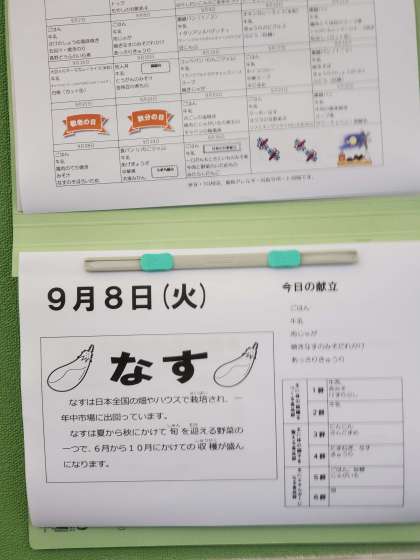 今日の献立には、なすやきゅうりなど夏野菜が使われています。なすには、秋なすと言われて10月頃まで実るものもありますが、旬の野菜がしっかり摂れるところも、給食の良いところです。