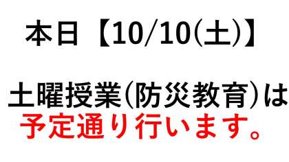 本日(10/10)の土曜授業は予定通り、防災教育をおこないます。