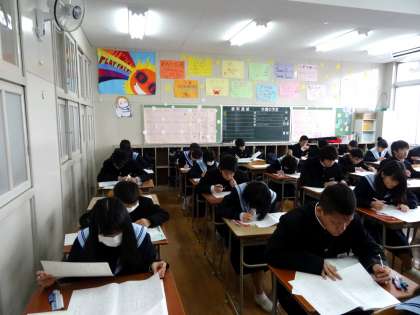 1月14日水曜日、1年生と2年生を対象に、チャレンジテストが実施されました。1年生は3教科、2年生は5教科のテストでした。1・2年生ともに最後まで集中して問題を解いていました。日ごろの学習の成果は出せたでしょうか。また明日からの授業も集中して取り組みましょう。