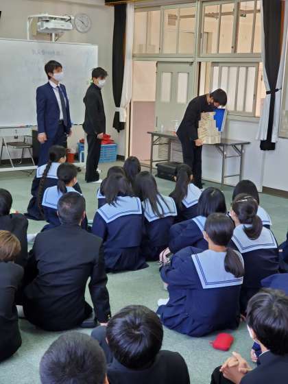福島税務署の方にお越しいただき、クラス毎に租税教室を行いました。