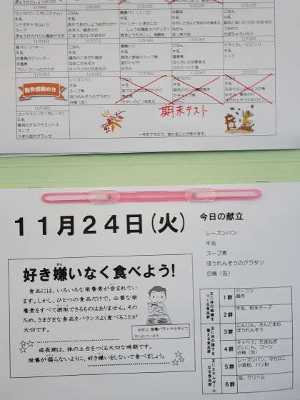 明日から三日間、期末テストがあります。給食はありませんので、ご家庭で昼食の用意をお願いします。