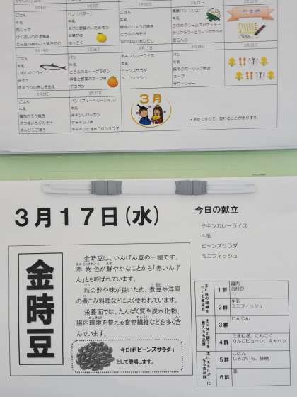 今日の給食カレンダーは、ビーンズサラダに使用されている金時豆についてです。