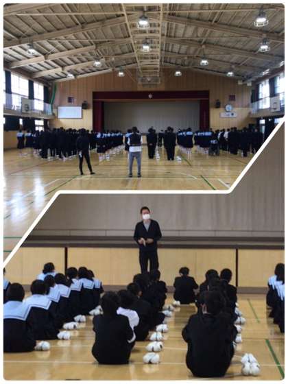 その後、学年主任の丹羽先生からお話があり、学校における1日の過ごし方について、休み時間は、次の授業への準備であり切り替えをしっかりすることや、感染対策を意識して、密にならないように注意することなど、気になるところを確認されました。