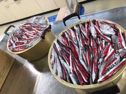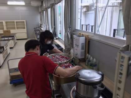 仕事の合間をぬって、大きな鍋をいくつも使用して、