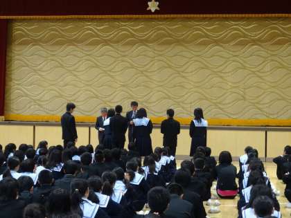 各学年の1組の学級代表が校長先生より認証状を受けとりました。