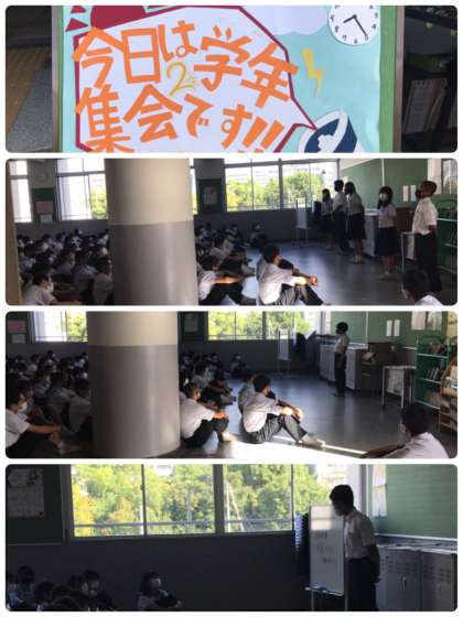 2年生の学年集会があり、体育委員からの呼びかけがありました。