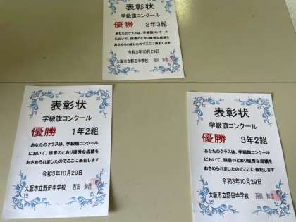 体育大会に向けて、作成した学級旗を文化発表会にて