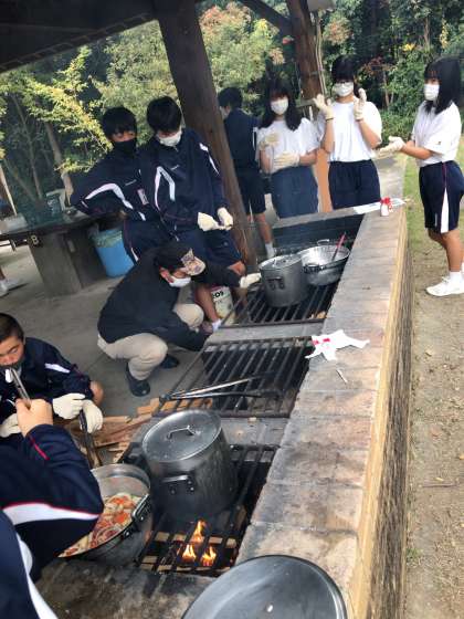 早い班は、カレーを炊き始めてます