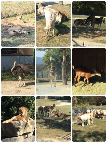 ドライブサファリで観光バスに乗ったまま、サファリゾーンにいる野生動物を見学しました。たくさんの動物がいて、あちらこちらから歓声が上がっていました!