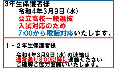 本校74期生(3年生)が、無事に入試会場に向かい力を発揮してくれる