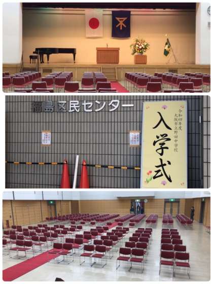 福島区民センターでは、入学式の会場設営をしてくれました。素晴らしい会場に仕上げてくれました。ありがとうございます。