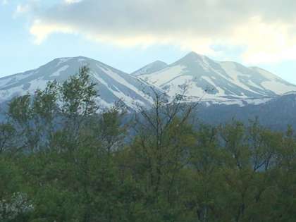 2日目のホテル、乗鞍高原休暇村につきました。乗鞍岳がそびえたってます!