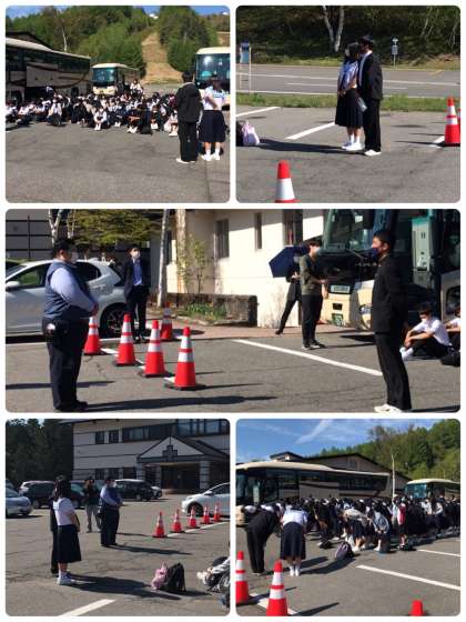 退館式を終え、8時に上高地に向けて出発しました。ありがとうございました。
