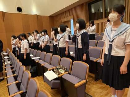 5月29日(日)、?大阪音楽大学にて、NHK全国学校音楽コンクール課題曲講習会が行われ、音楽部が参加しました。夏のコンクールに向けて、本格的な発声や音楽的な表現などを学び、充実した時間を過ごすことができました。