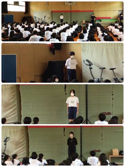 8時40分より、一泊移住の出発式が行われ、司会担当の生徒が進めてくれました。