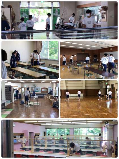 8時30分から清掃活動です。清掃場所が割り当てられ、それぞれの役割をこなしています。来た時よりも美しく!よろしくお願いします。