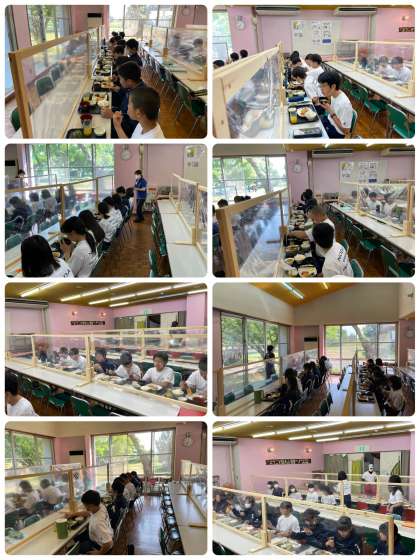 ごはん、みそ汁をおかわりして、たくさん食べています。