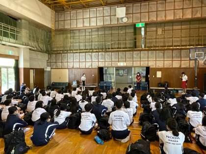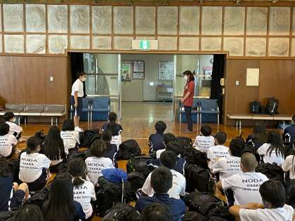 退所式です。職員の方からご挨拶いただき、代表生徒からお礼の言葉を伝えました。2日間大変お世話になりました。ありがとうございました。