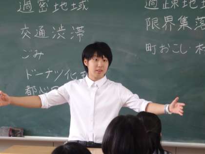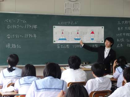 2年生向け社会科で人口問題についての授業の後、高校や大学