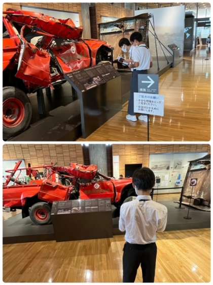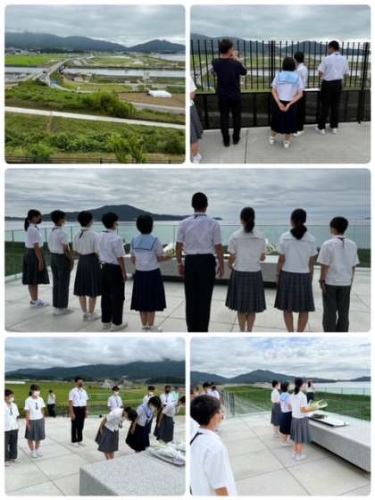 tsunamiメモリアムという津波伝承館での見学を行い、当時の映像などを見て学習しました。