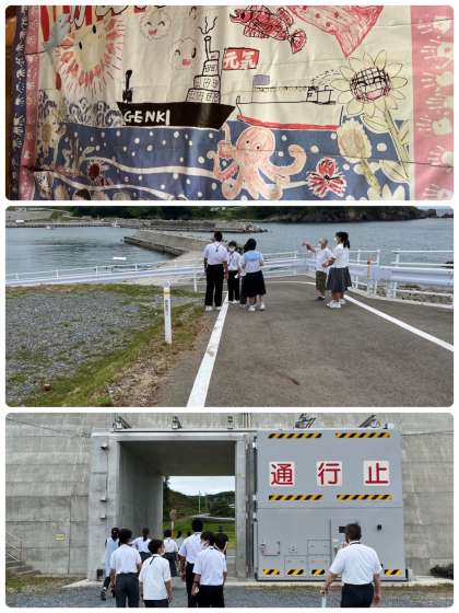 その後、近くの防潮堤を見学しました。防潮堤の高さに圧倒されていました。