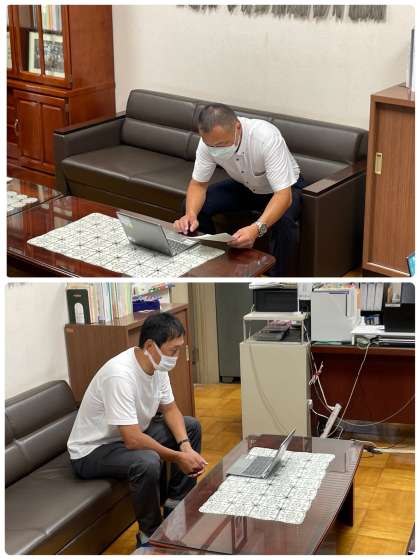始業式はリモートで実施しました。校長先生、丹羽先生よりお話がありました。続いてバドミントン部、音楽部、陸上部の表彰がありました。夏休み頑張った成果ですね。おめでとうございます。