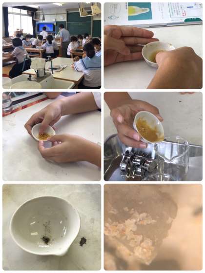 4時間目に1年生の理科の授業があり、「火山灰の観察」という実験をしました。