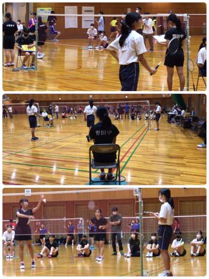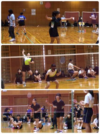 本校のバドミントン部がブロック大会を勝ち抜き、今日の女子団体24校の決勝トーナメントに出場しました。このトーナメントは2つのダブルスと1つのシングルスで勝敗を決めます。