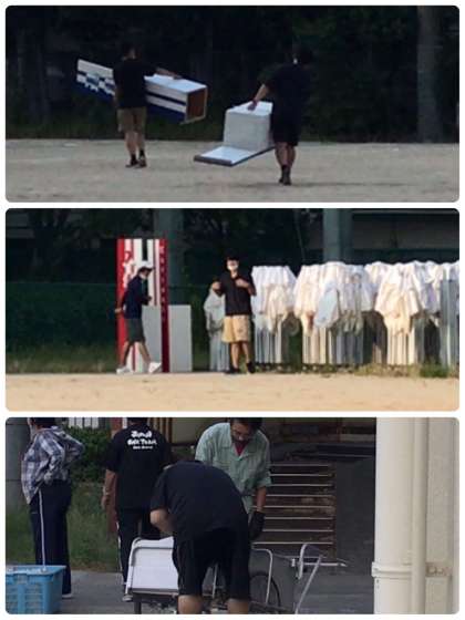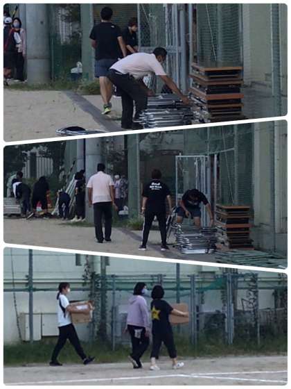 本日午後から、体育大会の準備です。P T Aの方々にご協力をいただき、テントや入退場門などを運んでいただきました。準備ができる範囲で進めています。