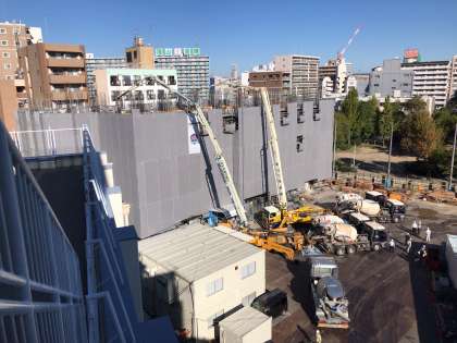 新校舎工事は、本日4階床のコンクリートが流し込まれています。一度更地になったところから4階まで積み上がってきました。着々と工事が進んでいます。