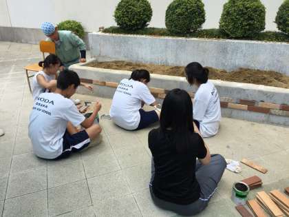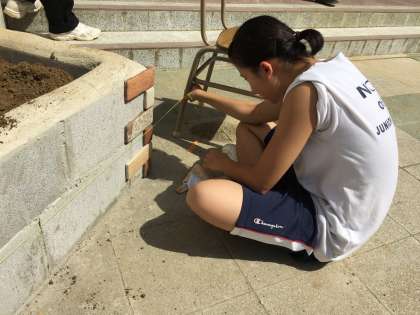 スペースで先生とともに花壇づくりを開始しました。