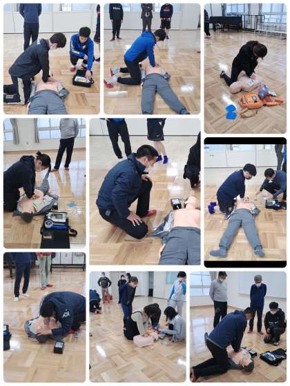 4月7日(金)、教職員普通救命講習会を行いました。内容は、心肺蘇生法、AEDの使い方、気道異物の除去など実習をふまえ実施しました。