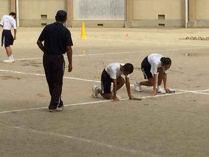 25日の体育大会に向けて、生徒も先生も競技の練習に